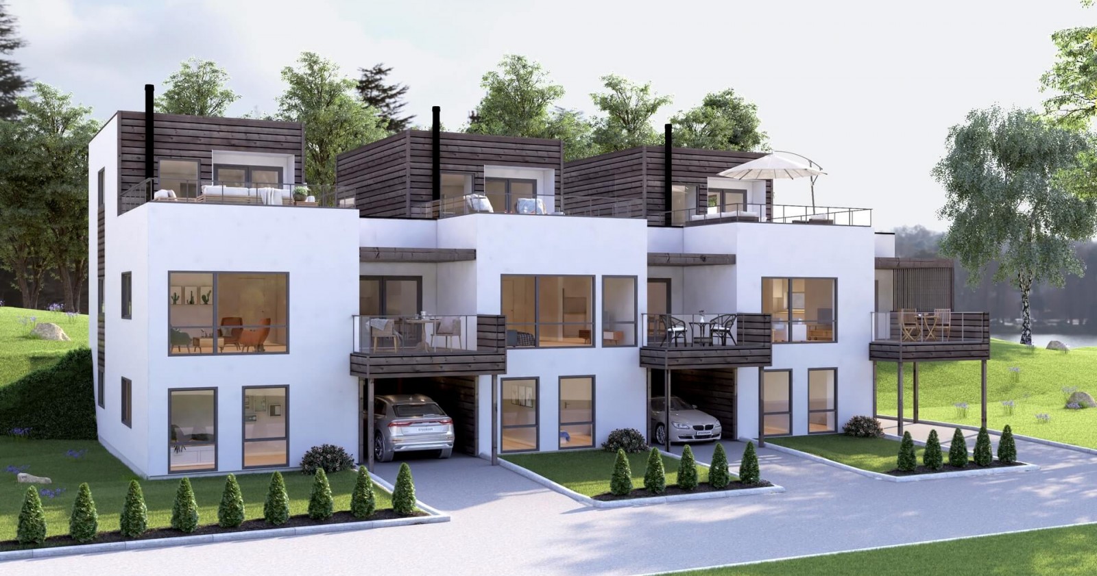 Bolig 1107 er basert på eneboligen LUNA plassert i rekke. Dette er en romslig bolig med moderne arkitektur og spennende bruk av byggematerialer. På denne modellen står man fritt til å velge antall enheter man ønsker, ut fra forholdene på tomten. Terrasser utenfor både kjøkken og loftstue, gir boligen det lille ekstra.